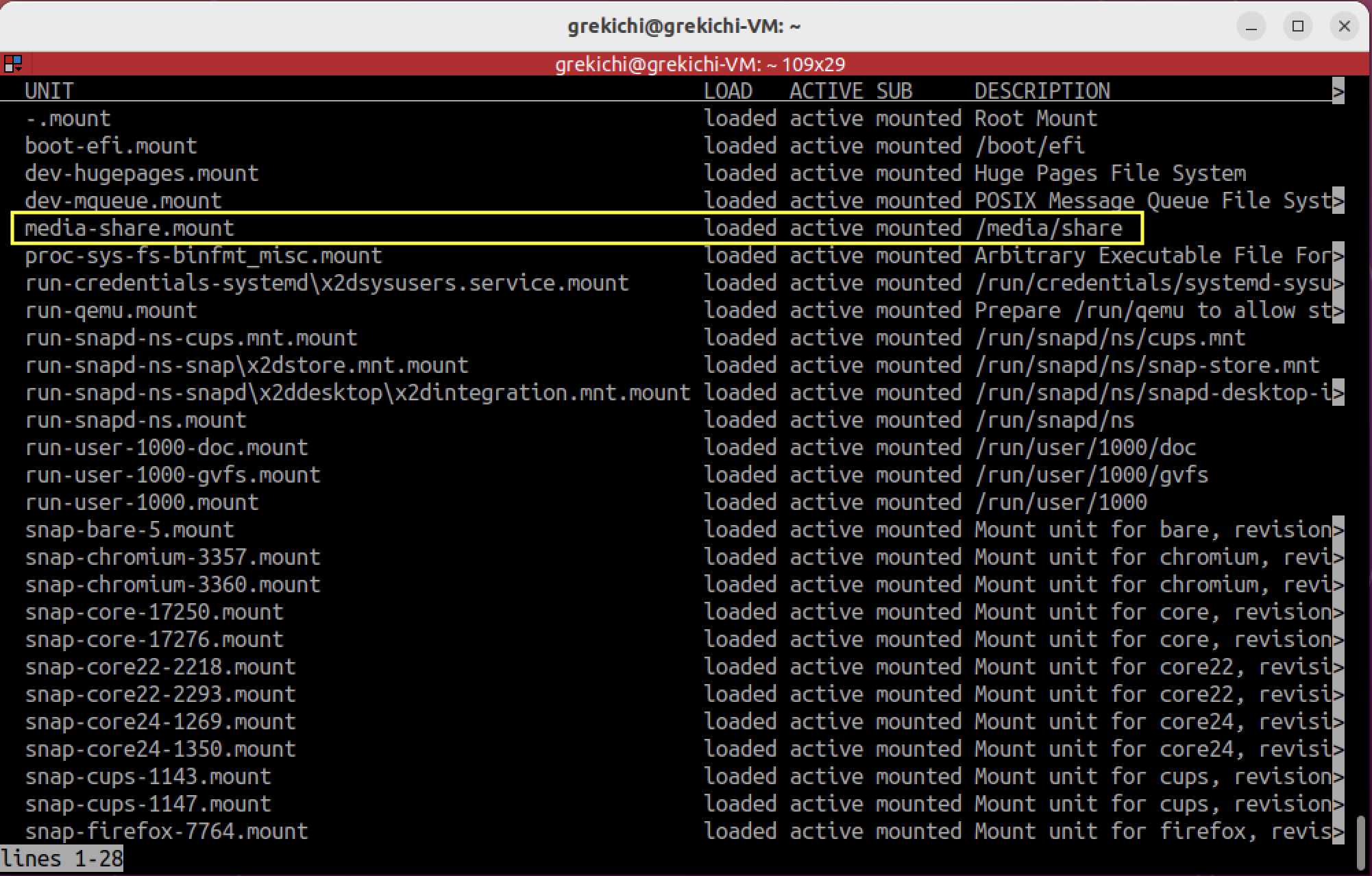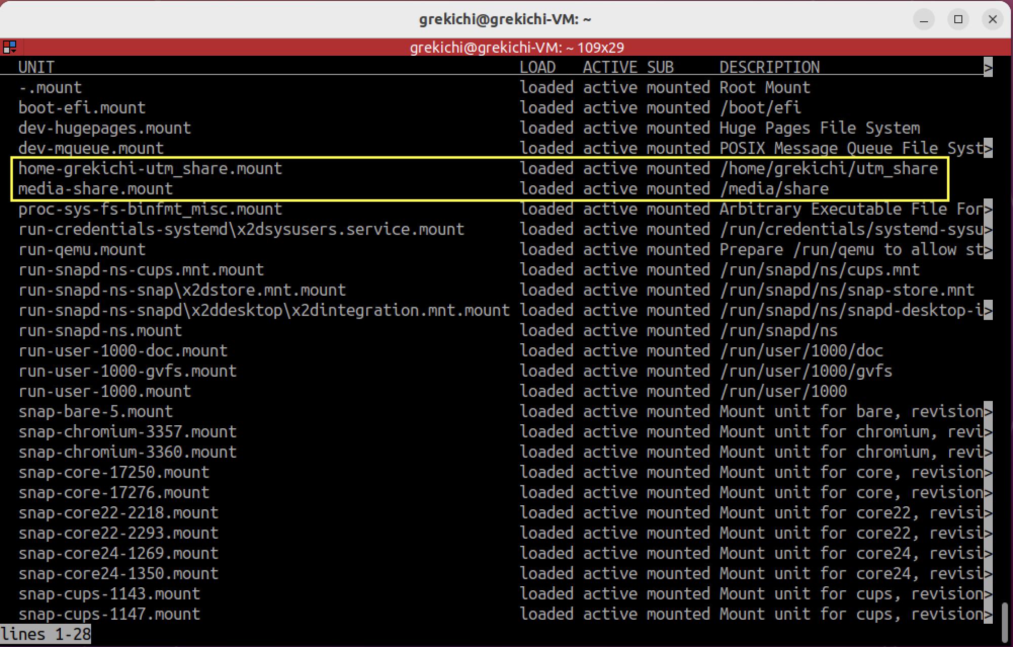 systemctl list-units --type=mountこれを実行すると下記のような内容が表示されます。まだファイルが共有出来てない状態ですね。